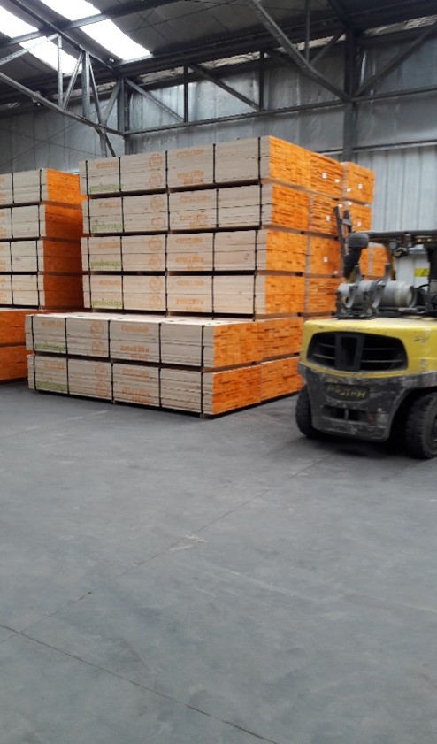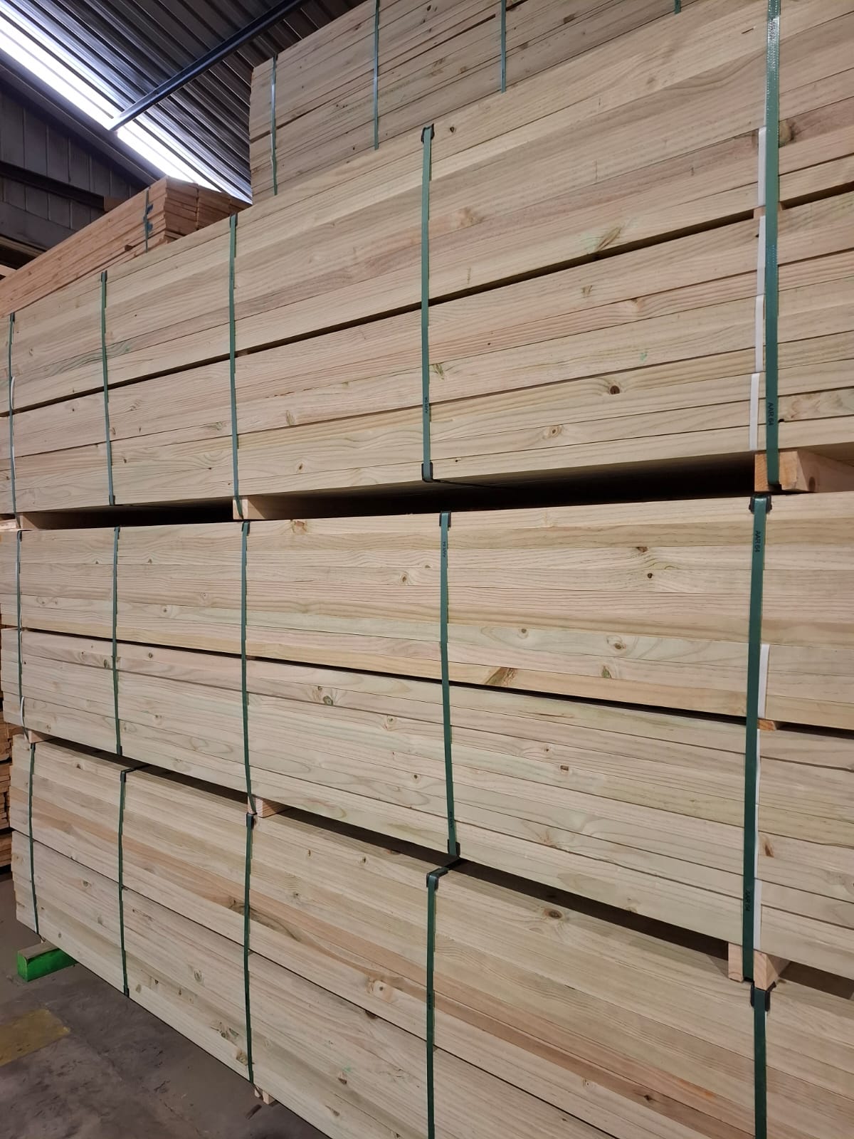 La madera dimensionada en estado verde es un producto proveniente del proceso de aserrío y presenta un contenido de humedad superior al 30%. Se entrega con aplicación de producto antimanchas.